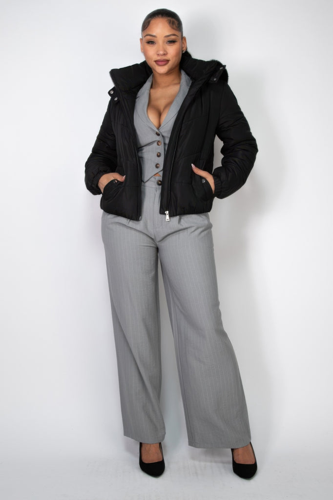 Elevate your winter wardrobe with our Insulated Zip-Up Faux Fur Hooded Jacket. Add it to your cart now and enjoy the perfect blend of style and warmth!