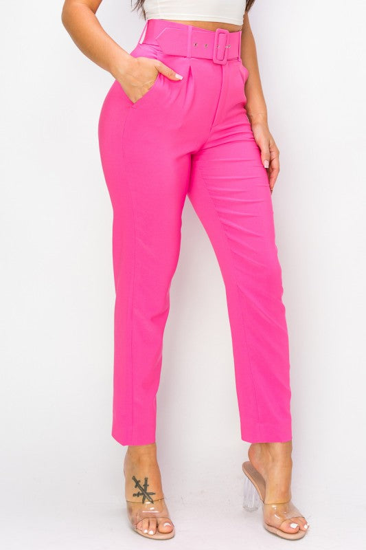 Women Ankle Slim Fit Cigarette pants with Belt
