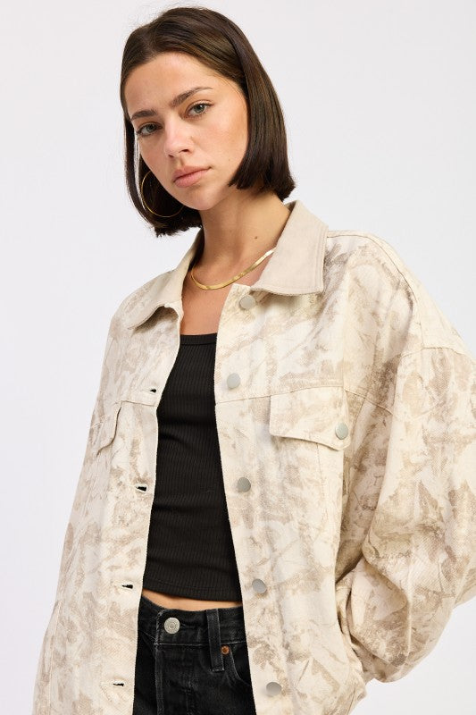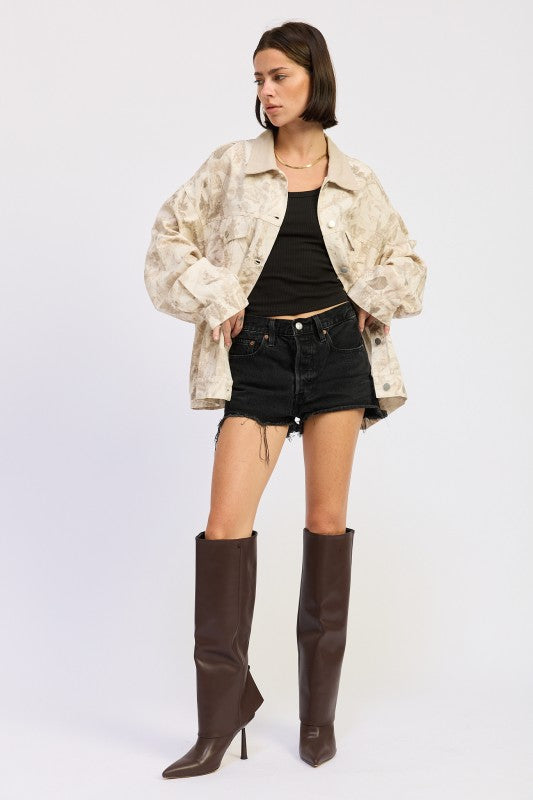 OVERSIZED CAMO BUTTON FRONT JACKET