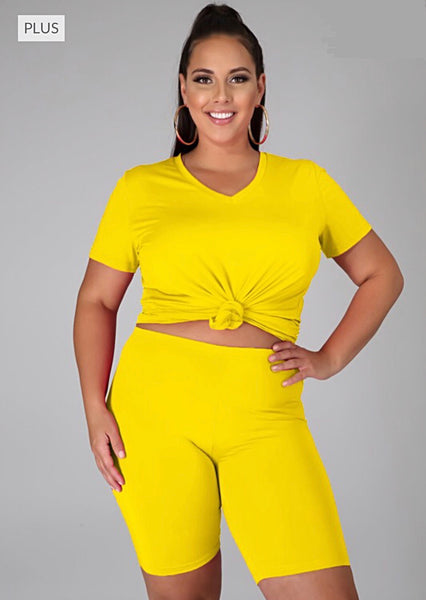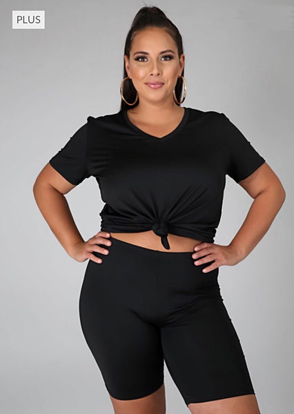 solid color two piece outfits plus size women's casual v-neck t-shirt shorts suit